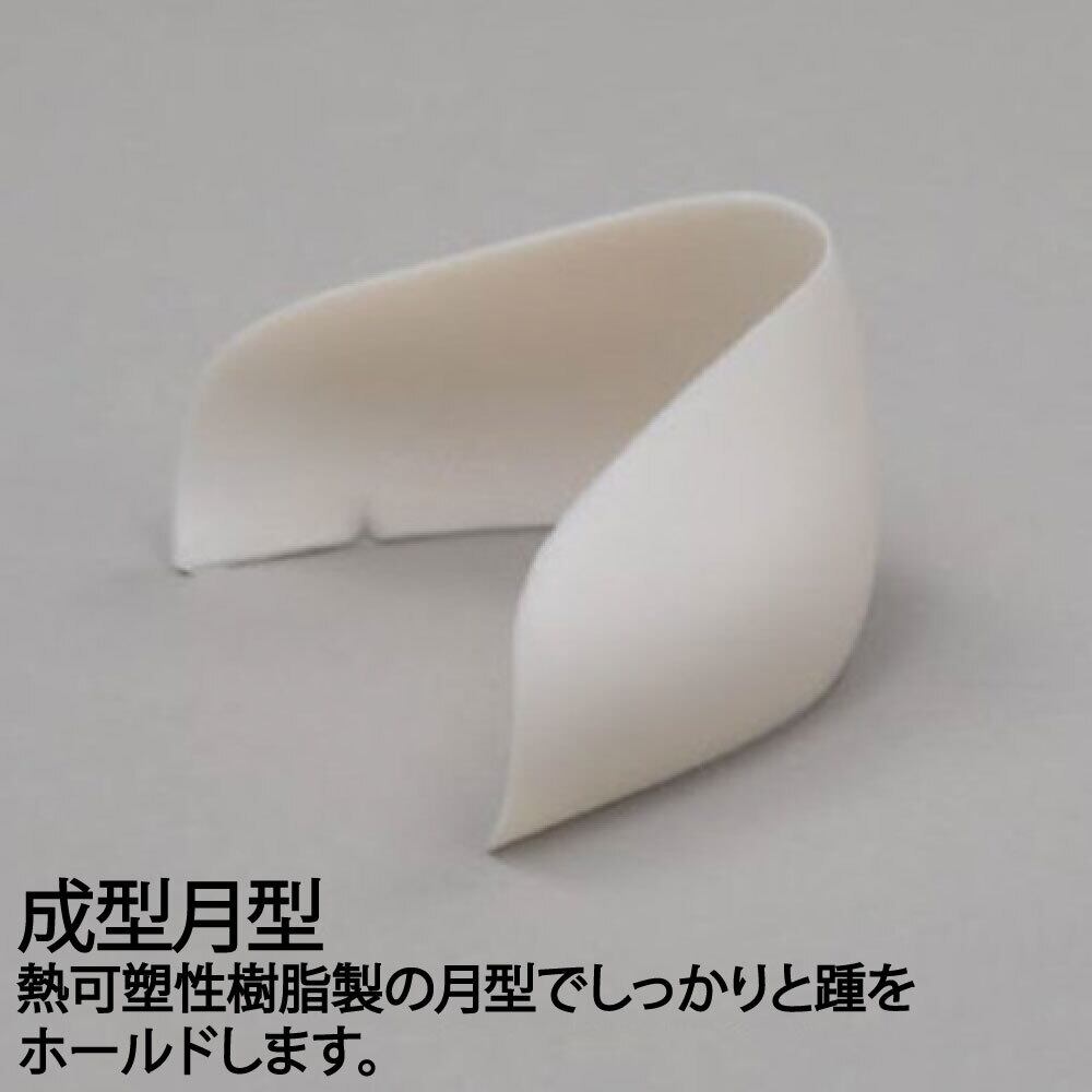 ▽成型月型:熱可塑性樹脂製の月型でしっかりと踵をホールドします。
